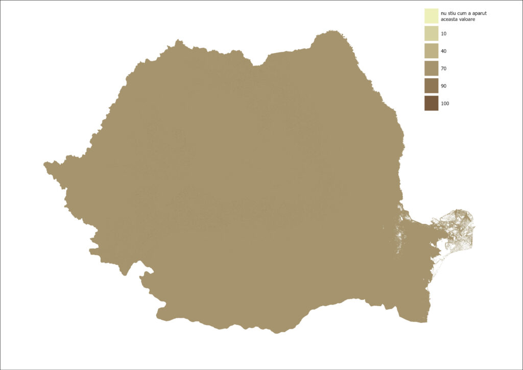 Am decis să las această pondere, iar în rularea modelului de GIS, să pun o pondere de valoarea 1 acestei clase din Curbura Profilului, astfel încât, introducerea ei între parametrii finali, să afecteze într-un mod neglijabil rezultatul final.