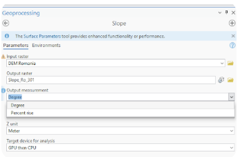 Nume: Criterii Geografice și Topografice - Panta TerenuluiArcGIS tool: Surface Parameters (Spatial Analyst Tools), apoi…